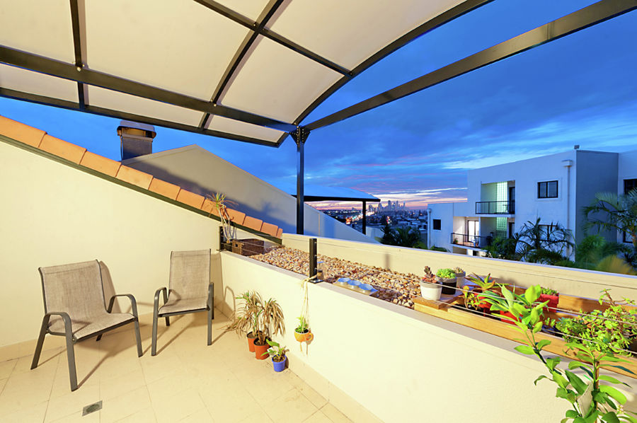 As is this is a two storey top level villa. On the first level you have large lounge and kitchen, two balconies, separate dining room, third toilet, master bedroom with ensuite, and on the second level you have two bedrooms, bathroom, and a large balcony with the views to the city skyline of Broadbeach and Surfers Paradise.