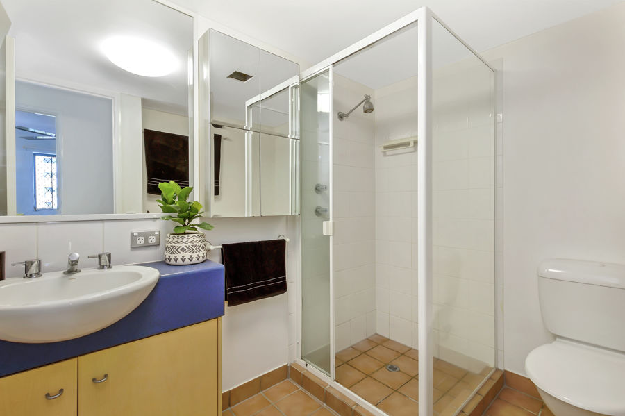 The unit and comes with A/C in the main living area and stainless steel fan in the bedroom that makes it very comfortable, while the bathroom doubles as a laundry. The terracotta balcony has a peaceful green outlook and is spacious enough for a BBQ, table and some chairs.